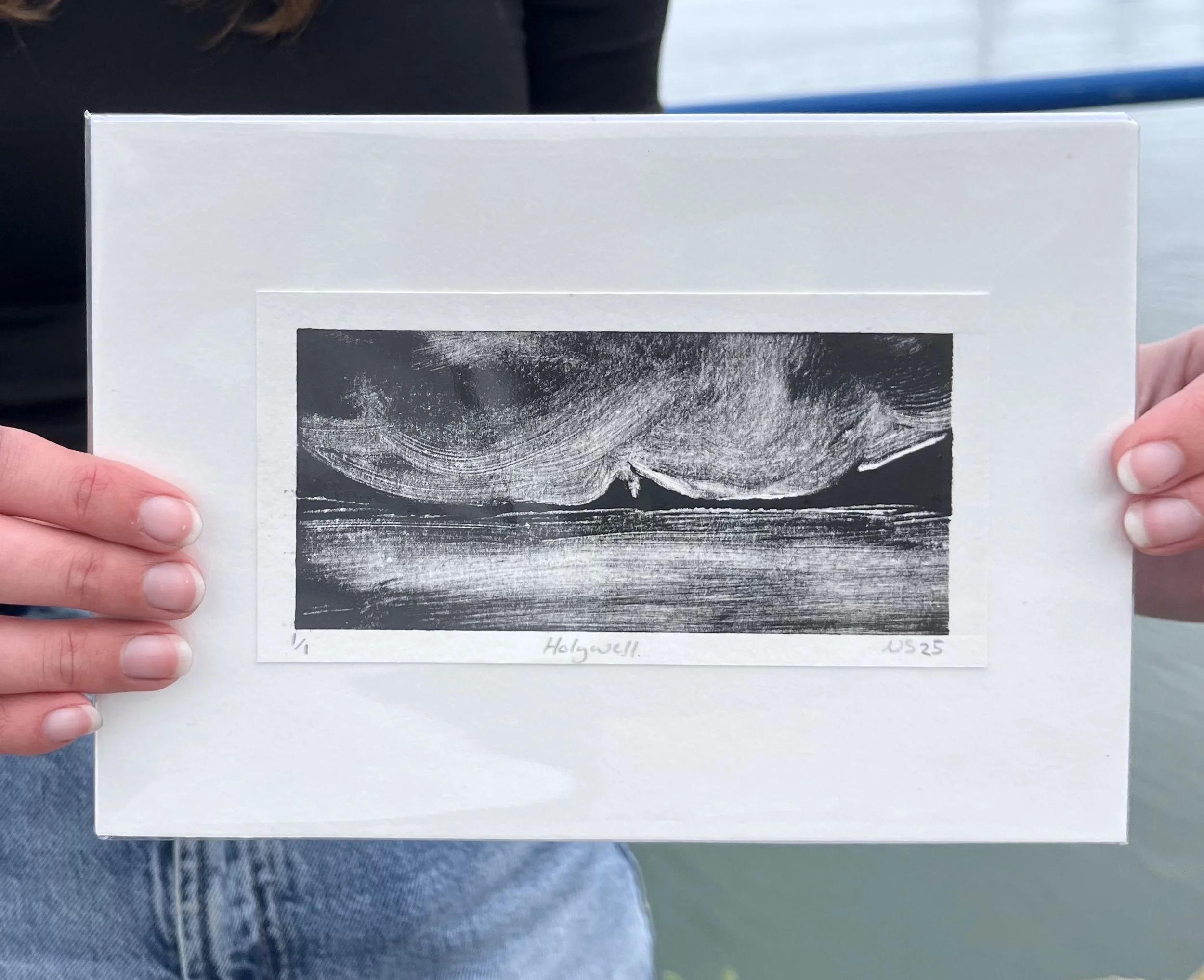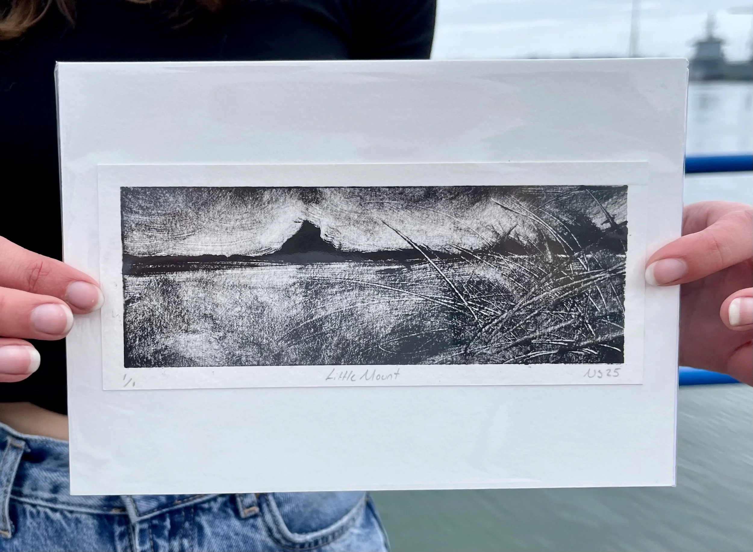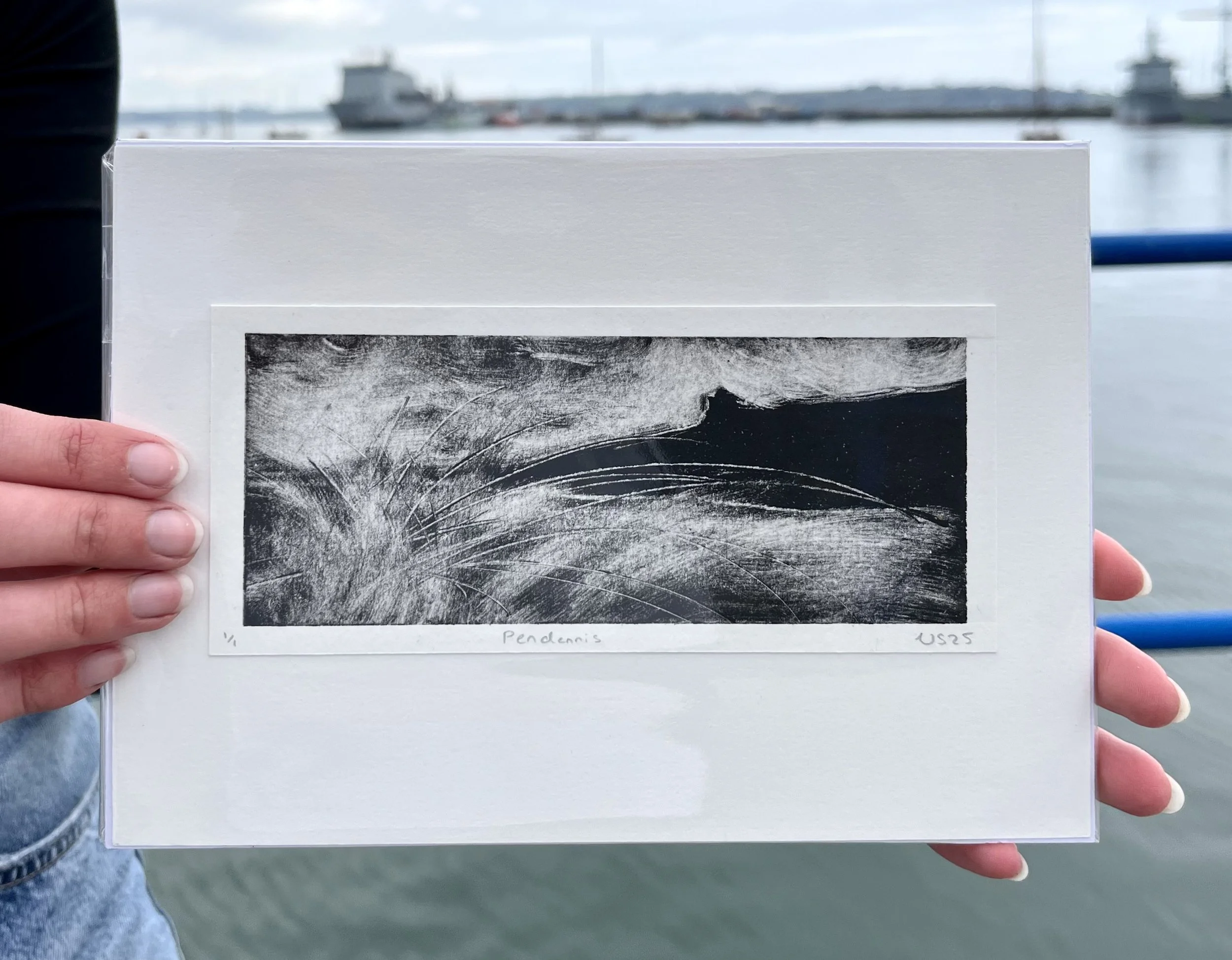 Niamh’s monotypes are all one of a kind original prints. She creates them by wiping away ink by hand to create light, giving the pieces an organic and rugged atmosphere